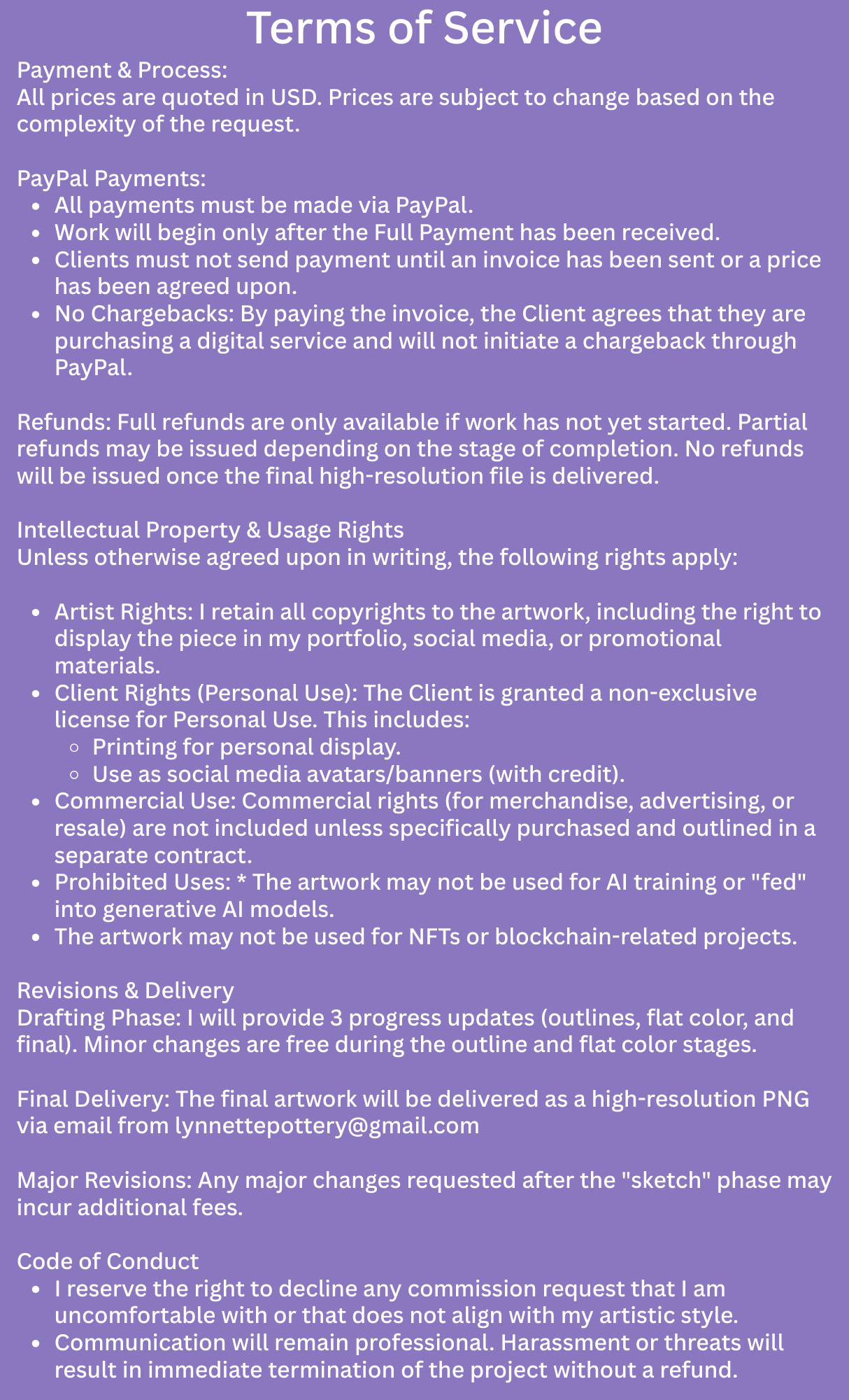 ⋆ I accept payment via Paypal.